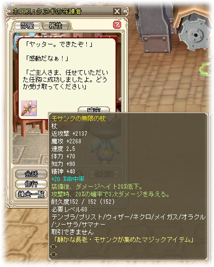 装備ですが、優秀なチュー様がほぼ1発制作!