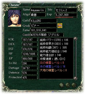 ワンコがINTなのと、5石を2個装備しているためステが下がってます。