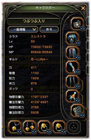 この調子でアクセ類を良い物に変えていって、装備も50装備に変えて
